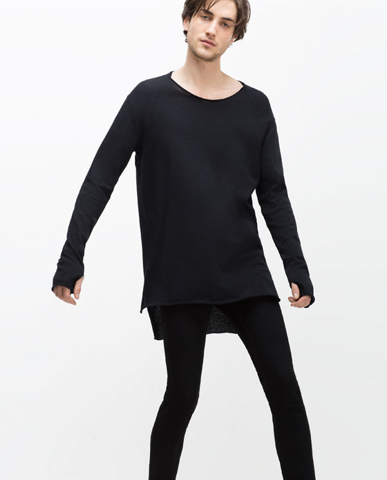 Esta sweat preta, tem um modelo muito peculiar nos homens, adoro o promenor de ser mais comprido atrás, muito sexy. Fica bem com as calças brancas vistas na imagem á esquerda.