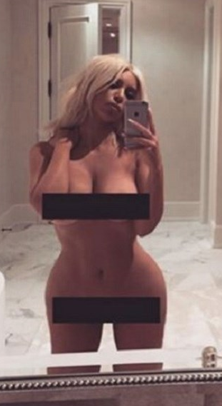 Kim Kardashian tirou uma foto nua ao espelho de quando estava loira e postou nas redes sociais.
